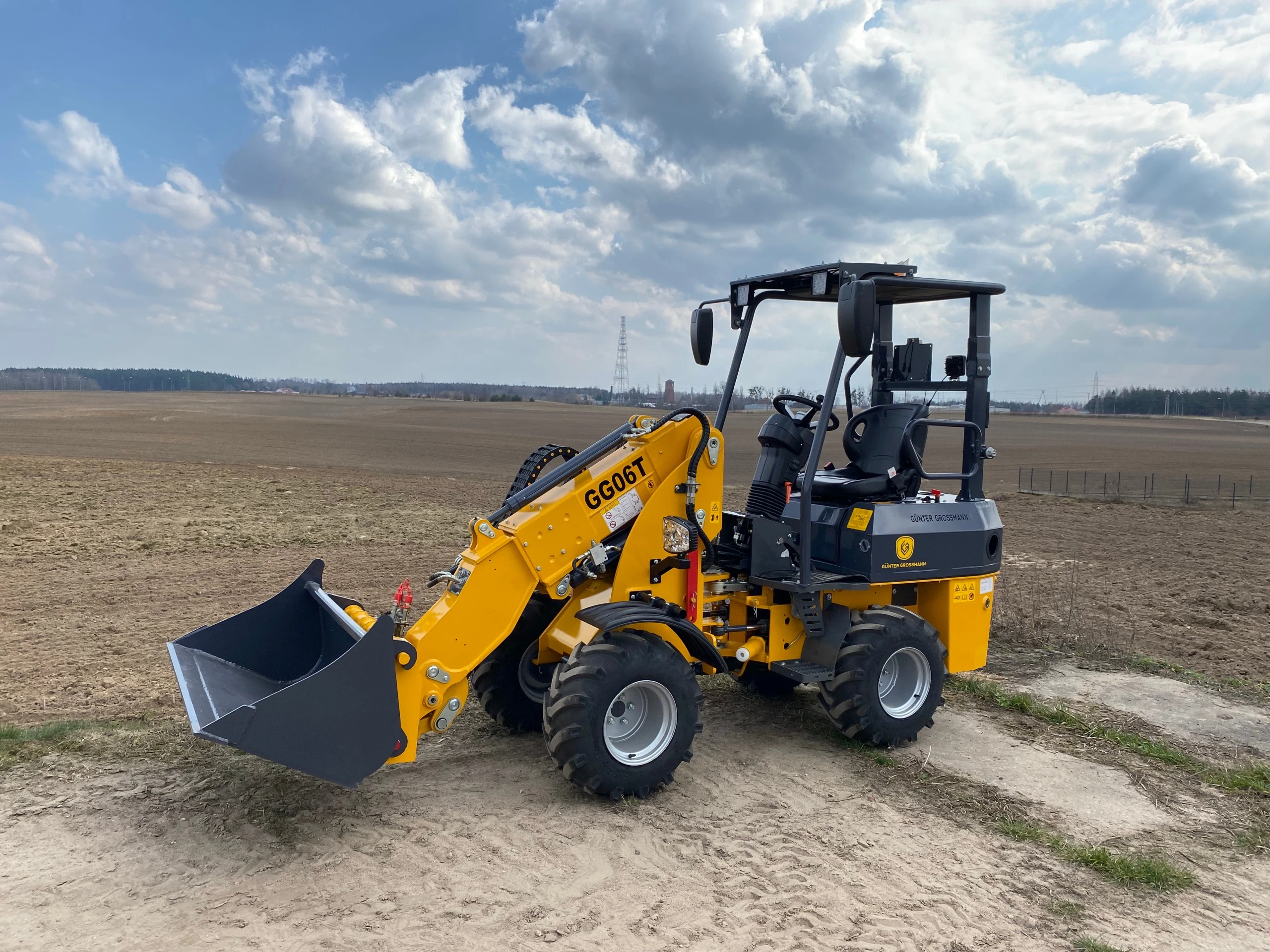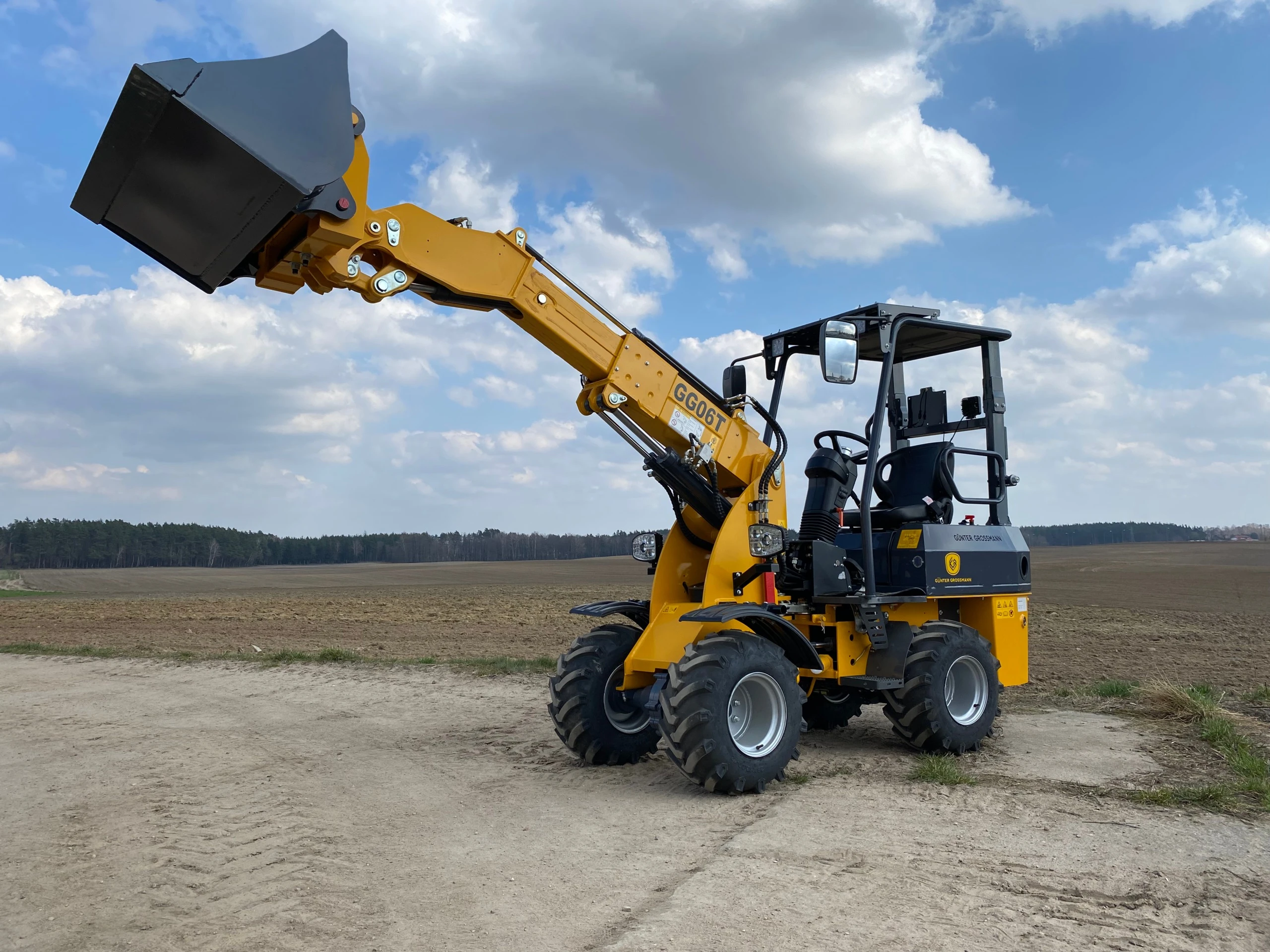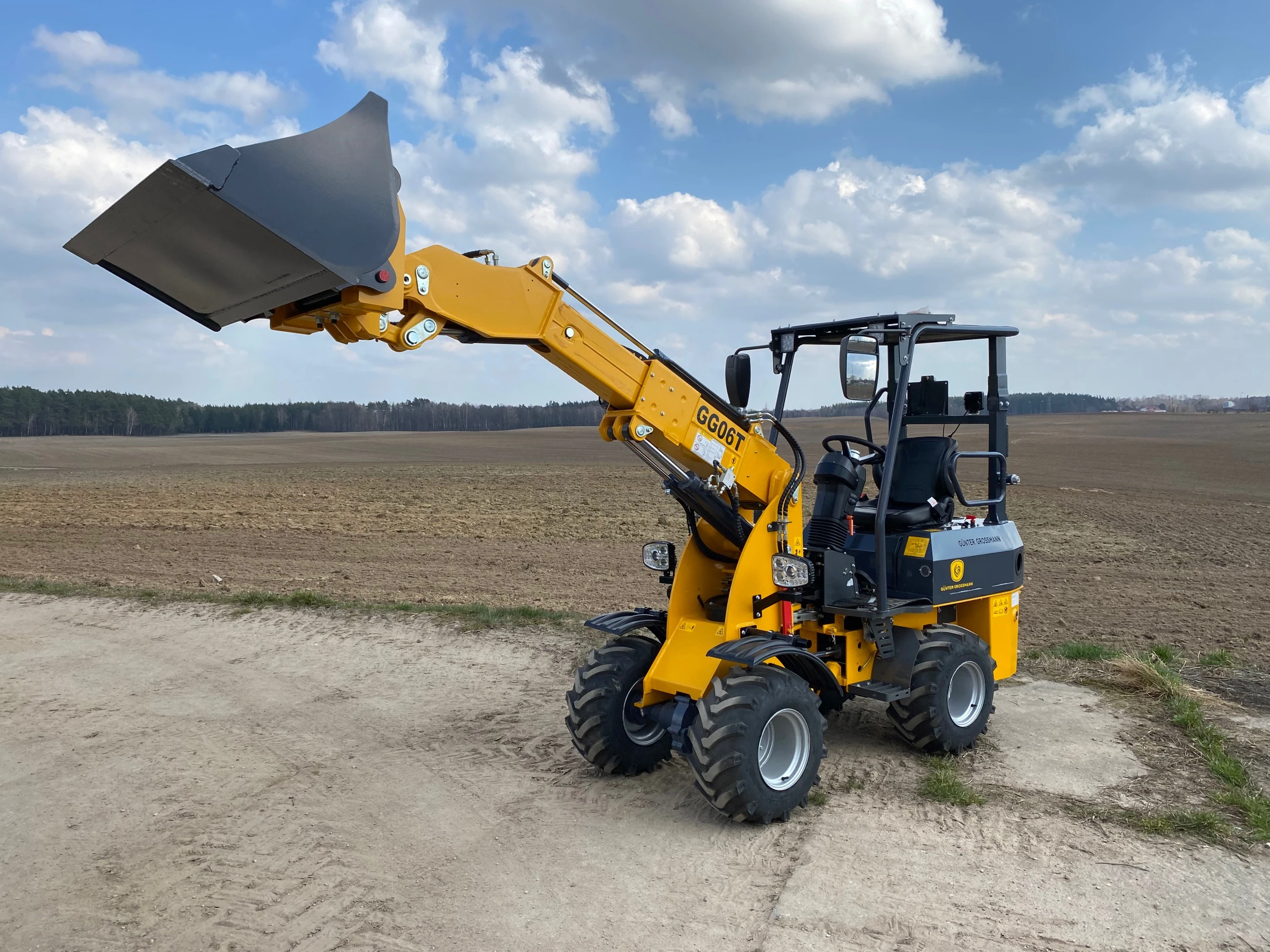 Ładowarka teleskopowa wyposażona jest w łyżkę o pojemności 0,4 m³, co pozwala na szybki i precyzyjny załadunek materiałów. Z ładownością 600 kg maszyna zachowuje stabilność i efektywność, nawet przy transportowaniu cięższych ładunków.