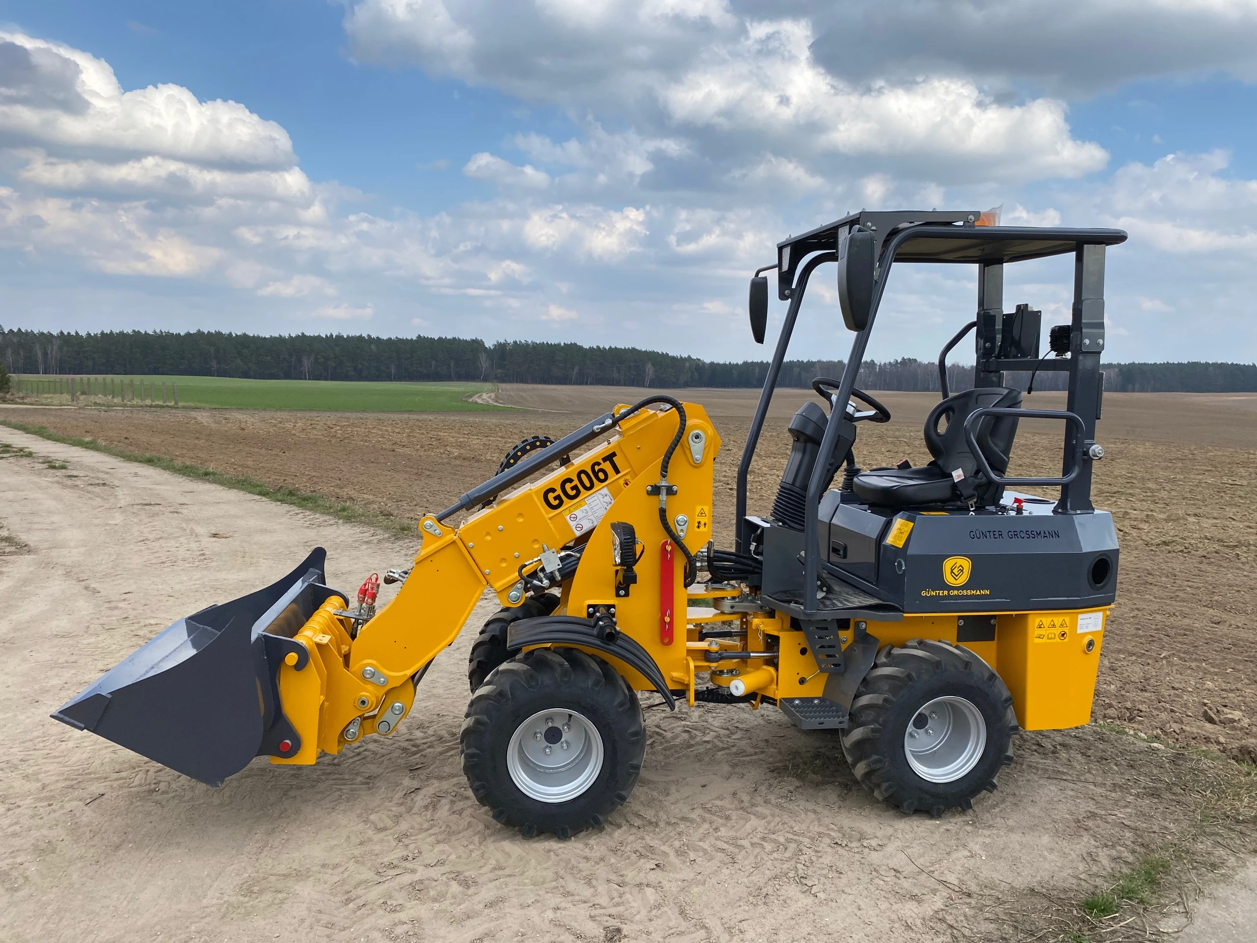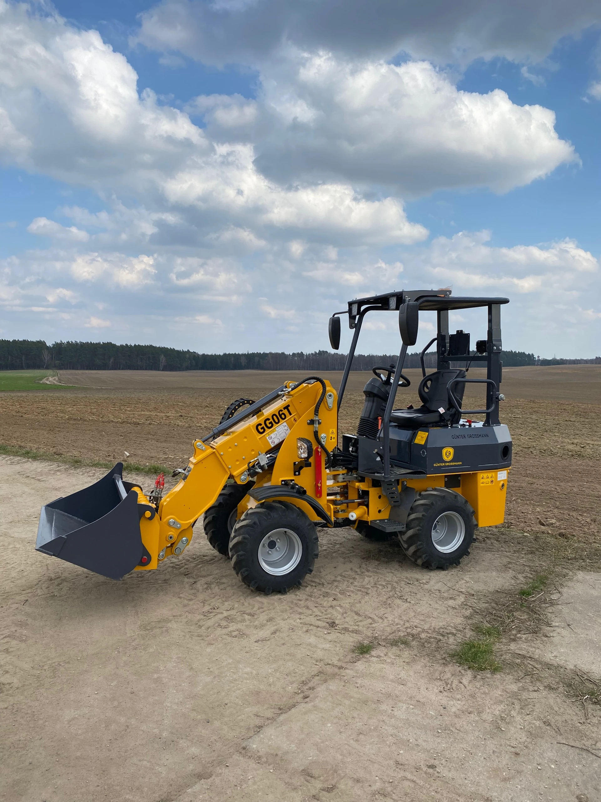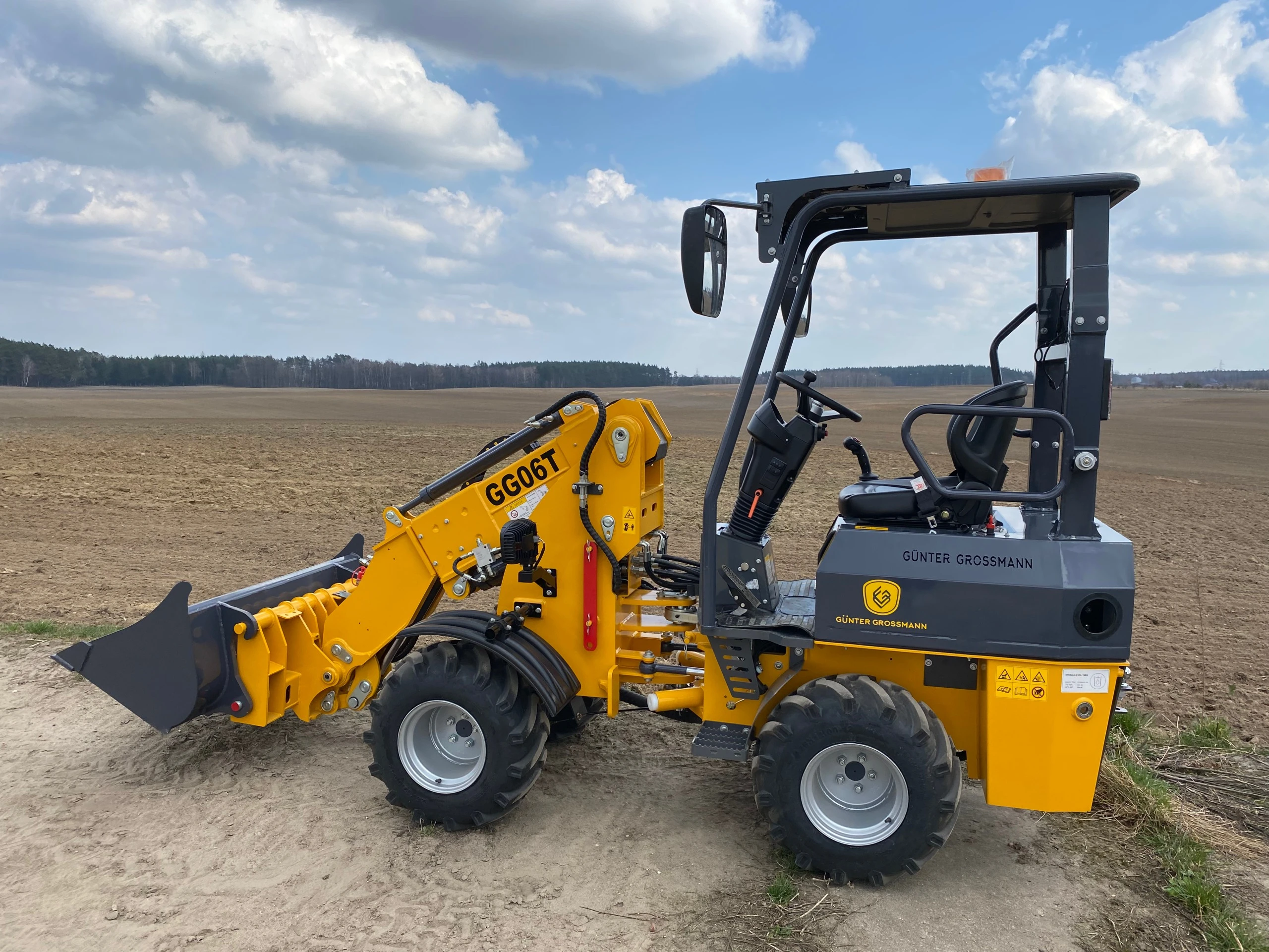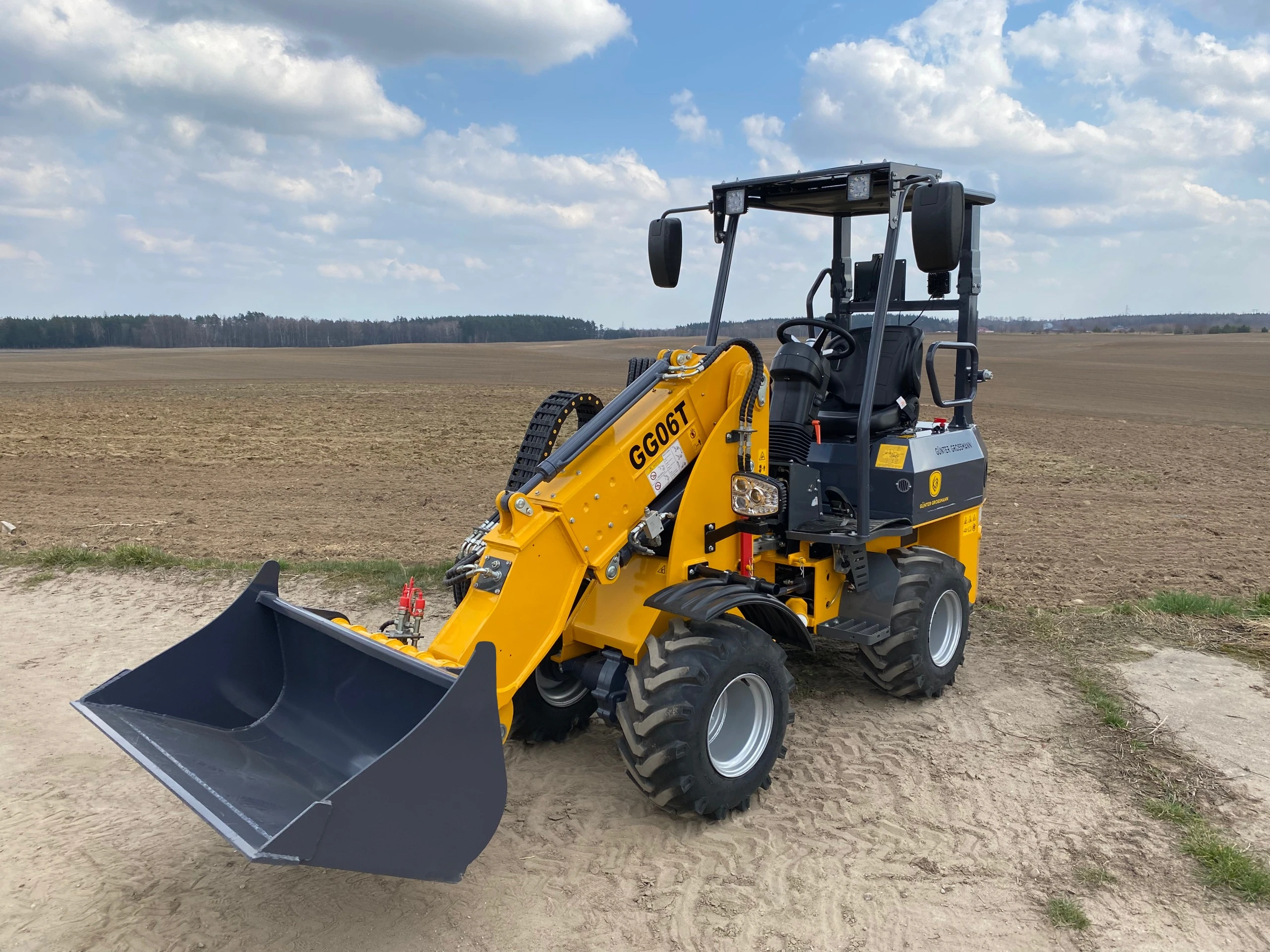 Ładowarka teleskopowa wyposażona jest w łyżkę o pojemności 0,4 m³, co pozwala na szybki i precyzyjny załadunek materiałów. Z ładownością 600 kg maszyna zachowuje stabilność i efektywność, nawet przy transportowaniu cięższych ładunków.